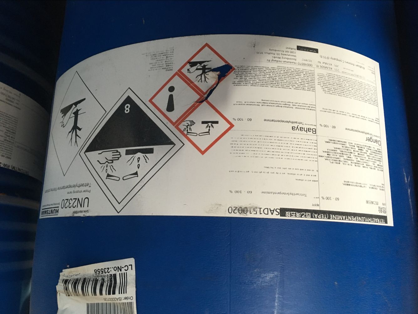 產(chǎn)品名 | 四乙烯五胺 | 英文名 | Tetraethylenepentamine(TEPA) | 產(chǎn)品外觀 | 微黃液體 | 包裝規(guī)格 | 205kg/桶(塑料桶) | 產(chǎn)地 | 美國、沙特 | 供應商 | 亨斯邁 | 應用 | 固化劑、聚酰胺樹脂等 | 危險類別 | 8類; | CAS NO | 112-57-2 |