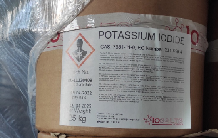 產(chǎn)品名 | 碘化鉀 | 英文名 | Potassium iodide | 產(chǎn)品外觀 | 白色晶體 | 包裝規(guī)格 | 25kg/桶(紙板桶) | 產(chǎn)地 | 智利 | 供應(yīng)商 | COSAYACH | 應(yīng)用 | 用于碘化物、醫(yī)藥、食品添加劑和感光乳化劑等 | 危險(xiǎn)類別 | 非; | CAS NO | 7681-11-0 |