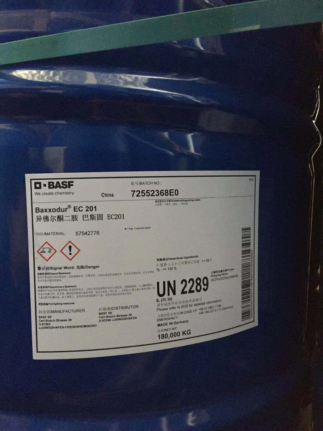 產(chǎn)品名 | 異氟爾酮二胺 | 英文名 | Isophorondiamine(IPDA) | 產(chǎn)品外觀 | 無色或淡黃色透明低粘度液體 | 包裝規(guī)格 | 180kg/桶(鐵桶) | 產(chǎn)地 | 進口 | 供應(yīng)商 | 巴斯夫 | 應(yīng)用 | 環(huán)氧樹脂固化劑 | 危險類別 | 8類; | CAS NO | 2855-13-2 |