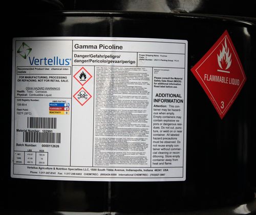 產(chǎn)品名 | 4-甲基吡啶 | 英文名 | γ-Picoline | 產(chǎn)品外觀 | 無色至淺黃色透明液體 | 包裝規(guī)格 | 190kg/桶(鐵桶) | 產(chǎn)地 | 美國 | 供應(yīng)商 | 凡特魯斯 | 應(yīng)用 | 農(nóng)藥、醫(yī)藥,催化劑,洗滌劑,紡織,固化劑,橡膠等 | 危險類別 | 3類; | CAS NO. | 108-89-4 |